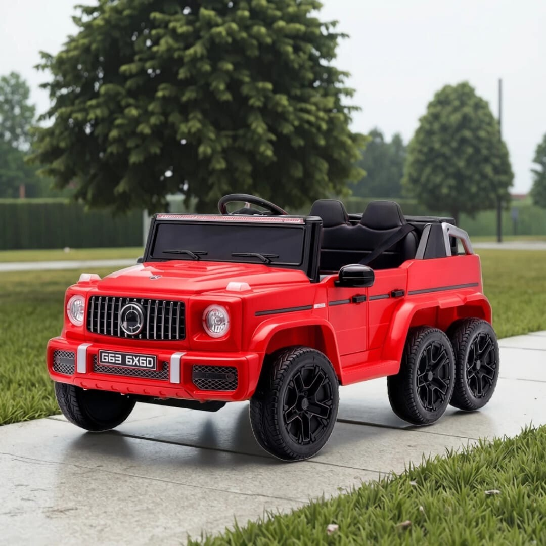G Wagon Style 6×6 Kids Electric Ride On Car 12vLet your little one cruise in style with this bold G-Wagon Style 6 x 6 Kids Electric Ride-On Car, now upgraded with 2 powerful motors for enhanced performance on various surfaces. Designed with a luxury SUV look, this 12V ride-on features a sleek red,white or black finish.